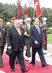 土耳其總統德米雷爾在4月19日在總統府舉行儀式,熱烈歡迎江澤民對土耳其進行國事訪問。中新社記者 彭偉祥 攝