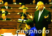 香港特區行政長官董建華,10月11日在香港立法會就他昨日所做的2001年施政報告接受議員提問。中新社記者 任晨鳴 攝