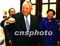 香港立法會主席范徐麗泰,10月11日陪同行政長官董建華到立法會回答議員關于施政報告的提問。中新社記者 任晨鳴 攝