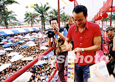 圖:任達華為珠海福利事業獻愛心 2002年05月20日 19:43 ![]() 十九日下午,香港著名影星任達華專程來到珠海市,為該市福利彩票發行中心舉辦的“六千萬元即開型福利彩票發行活動”助興,為支持珠海市的福利事業,任達華當場拿出一千元購買福利彩票。中新社記者 石頭 攝