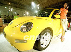 售價50多萬元人民幣的德國大眾“甲殼蟲”,出現在2002年北京國際汽車展覽會上,京城車迷紛紛與之合影。趙振清 攝