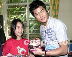 歌星郭富城24日在香港探訪保良局小朋友,該局的女歌迷難得與偶像近距離接觸,紛紛向偶像索取簽名。鄧慶樂 攝