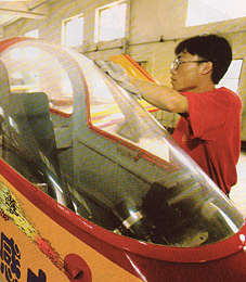 不能起飛的飛機:科源飛機公司的市場人員在擦試飛機上的灰塵。由于空管限制每次升空均需復雜程序。