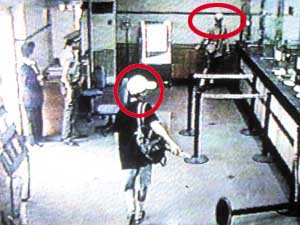北京懸賞萬元征集三元橋銀行劫案嫌犯線索(圖) 2002年08月04日 12:31 ![]() 兩名嫌疑人假作儲戶排隊觀察儲蓄所內周圍情況 ![]() 持刀向柜臺內喊話,另一人沖向柜臺出入口 中新網北京8月4日消息:7月31日上午9時35分左右,位于北京朝陽區三元東橋的中國工商銀行三元橋南儲蓄所發生了一起持槍搶劫案,兩名犯罪嫌疑人搶劫未遂逃跑。 據京華時報報道,前天,記者在望京、三元橋等地的居民小區看見了警方張貼的協查通報。目前,根據相關資料,案件中現場兩名嫌疑人的特征已被掌握,警方已懸賞1萬元向市民征集有價值的線索。 兩名嫌疑人特征如下: 1.嫌疑人甲,男,25歲左右,身高1.70米左右,體瘦、圓臉、膚色較黑,頭戴白色棒球帽,上穿土黃色T恤衫,下穿灰色帶花格短褲,腳穿白色長襪,隨身帶一淺黃色袖珍挎包。該人隨身攜帶自制小口徑手槍一支。 2.嫌疑人乙,男,25歲左右,身高1.70米左右,留平頭,膚色較黑,頭戴白色棒球帽,上穿黑灰色T恤衫,下穿白色短褲,腳穿白色長襪,隨身帶有一黑色挎包。該人持刀。