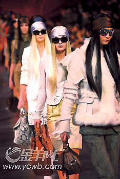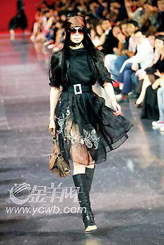 上月在上海舉行的Dior2006-2007秋冬秀,將半年后的秋冬風(fēng)潮率先帶到我們身邊。鑲滿人工碎鉆的超大墨鏡,幾乎將模特的臉遮住,讓挑剔的鏡頭分辨不出,誰(shuí)是呂燕,誰(shuí)是樂(lè)基兒。這讓人印象深刻的安排,隱約代表著Dior整晚的野心:事先大肆張揚(yáng)的哥特風(fēng),卻蘊(yùn)涵著不羈的壞女孩成分,從色彩到材質(zhì),都在悄悄地起著變化。或者,這就是新一輪的時(shí)尚變革。