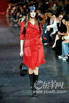 開(kāi)場(chǎng)白的黑色系列,偶爾閃出嬉皮味道極重的反光感,那是臉無(wú)血色的美麗訴說(shuō);與黑色相反的白色,并沒(méi)有純粹如春夏系列的爛漫,相反多了幾分質(zhì)樸感,同樣也許是材質(zhì)不同所造就的;而搶眼的烈紅就增添了一些猶如童話般的魅力,美得叫人吃驚;最后壓軸登場(chǎng)的紫色長(zhǎng)裙由超模琦琦演繹,色彩的幻變至此,已經(jīng)完全達(dá)到一個(gè)新高度。 (黃嘉麗)