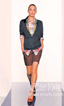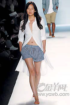而更加隨意的Tommy Hilfiger,則將浪漫的海灘風情演繹得更隨性,以寬大有型的格仔短褲搭配隨意敞開的休閑襯衫,簡單明了,一頭長發和敞開的領口是最具風情的女性化標簽。