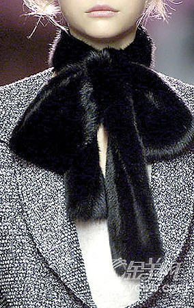 用領巾在頸間系個蝴蝶結是增加女性風情最簡單直接的方法,而YSL就特別在選用皮毛的材質,女人味與溫暖高貴并存。