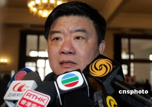 3月14日上午,全國政協十一屆一次會議完成各項議程后在北京人民大會堂閉幕。大會開始前,全國政協委員、衛生部部長陳竺在大會堂東大廳向媒體介紹中國衛生部門監控流感疫情的最新動態。中新社發 任晨鳴 攝