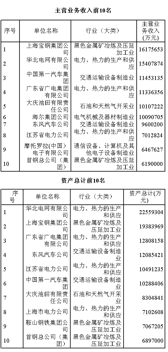2004年共有2154家工業企業進入大型企業的門檻,比2003年增加206家。主營業務收入、資產總計、從業人數和利潤總額分別比2003年增長38.5%、21.2%、10%和54.7%。