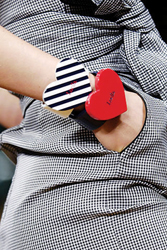 Givenchy將蕾絲花邊做成左右兩個相對的愛心放在胸前或許只是想表明,愛心也很脆弱,需要呵護需要溝通。Luella則頑皮地將愛心做成兩個紅色和條紋的手鐲,打上自己的logo,這下可不怕冒名頂替的了,專屬于Luella的愛心只有一個。