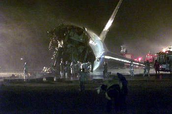 經附近消防單位立即派出大批消防車及人員前往救援,在28日凌晨零時左右將火勢控制,目前救護人員正全力搶救機上179名乘客及機組員。