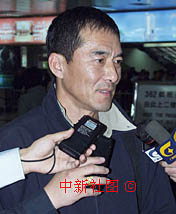 第九屆中國金雞百花電影節近日將在南寧舉行。圖為電影《生死抉擇》中的男主角15日在南寧機場接受記者采訪。中新社記者 錢興強 攝