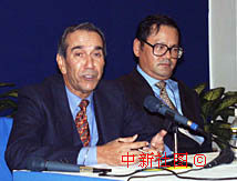 來自亞洲二十四個國家和澳大利亞的政要、前政要,日前在風景優美的海南博鰲水域,參加為籌備“亞洲論壇”而召開的“亞洲論壇專家學者會議”,前東盟秘書長辛格先生(左)被任命為博鰲“亞洲論壇”臨時秘書長。中新社記者 關向東 攝