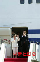 國家主席江澤民及夫人王冶坪在出席澳門回歸祖國一周年慶典活動后,20日中午乘專機離開澳門。中新社傳真 宗金柱 攝