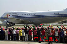 澳門市民手舞鮮花,熱烈歡送江澤民主席乘專機離開澳門。中新社傳真 宗金柱 攝