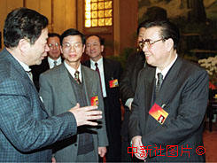 李鵬到全國(guó)人大福建省代表團(tuán)參加小組討論 2000年3月10日 08:42 ![]()