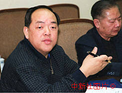 全國人大代表、澳門賀田工業有限公司董事總經理賀一誠(左)十四日在九屆全國人大三次會議的澳門代表團討論會上發言。作者:陳勇