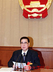 九屆全國人大三次會議十四日舉行主席團第三次會議,李鵬委員長主持會議。作者:李剛