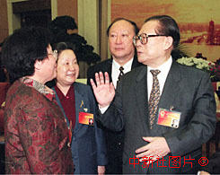 江澤民主席到全國人大上海代表團(tuán)參加小組討論 2000年3月8日 08:33 ![]()
