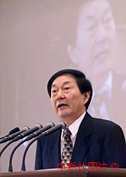 國務院總理朱鎔基14日出席“21世紀論壇”2000年會議,并發表演講。中新社記者 李剛 攝