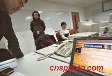 2月5日晚,有“歌壇常青樹”美譽的臺灣歌手蔡琴在臺灣通過長途電話與新浪網友進行聊天。蔡琴還將于2月14日至17日在北京領銜主演的大型音樂劇《天使--不夜城》。圖為工作人員在通過電話聯系蔡琴,電腦里正顯示著有關蔡琴資料的主頁。中新社圖 陸云 攝