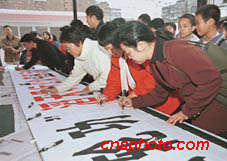 自天安門“法輪功”練習者自焚事件發生后,廣州各界人士紛紛舉行各種活動聲討“法輪功”的滔天罪行。八日,越秀區大新街的數千名居民簽名聲討邪教“法輪功”。中新社記者 梁永強 攝