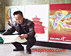 申辦2008年奧運之風二月下旬吹遍了北京每一個角落。圖為王府井大街北京百貨大樓內,也有不少北京申奧招貼畫。中新社記者 鄒憲 攝