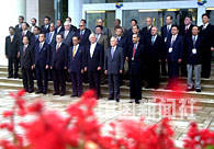 中國國家主席江澤民二十六日在海南博鰲水城集體會見出席亞洲論壇的貴賓,并在鮮艷的紅花叢前,與這些亞洲國家的前政要們和論壇秘書長合影。中新社記者 賈國榮 攝