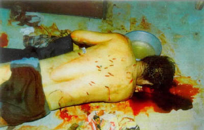 家住河北承德市桃李街的李亭受“法輪功”的欺騙,認為自己的父母是“惡魔”,他自己是“佛”。“佛”要把“惡魔”除掉,遂用尖刀將父母殺死。圖為被害者李亭之父。新華社發