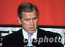美國總統小布什日前在華盛頓首次表示遺憾,他是在出席活動時首先講話,對美國軍用偵察機撞毀中國戰機,造成一名中國飛行員失蹤表示遺憾的態度。中新社圖