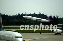 美國軍用偵察機的機組人員十二日清晨搭乘美國專機,從中國海南省海口市美蘭機場起飛離境。中新社記者 賈國榮 攝