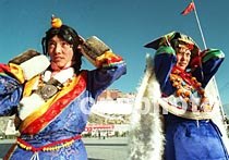 被稱為“陽光之城”的拉薩市,冬天仍陽光燦爛。兩位穿著盛裝的藏族婦女在布達拉宮前細心打扮,準備照相。中新社圖 吳新華 攝