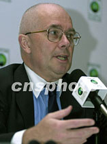香港投資推廣署署長盧維思,5月9日在香港舉行的《財(cái)富》論壇上就中國入世后的商機(jī)回答記者問。中新社傳真 任晨鳴 攝