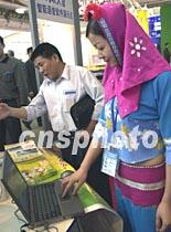 一名福建惠安女到北京參加五月國際科技博覽會,她對筆記本電腦演示的智能語音軟件產生了興趣。中新社記者 賈國榮 攝
