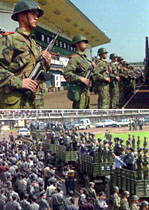 四川南充警方五月二十九日召開公捕大會,將五月在高坪區、順慶區進行三起重大搶劫、殺人、強奸犯罪的犯罪嫌疑人劉天兵、劉天龍、廖雄、趙強四人公開逮捕。