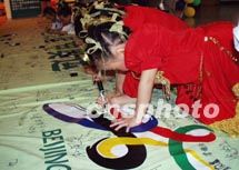 由廣州市婦聯主辦的“廣州兒童支持北京申奧”簽名活動,六月一日在廣州舉行,長長的巨幅橫額簽滿了數千小朋友的名字。中新社記者 羅仰明 攝