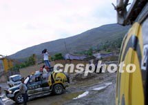 “西進路上逢甘露”,6月8日,萬里行車隊從西安赴蘭州,長途跋涉十五個小時,克服了雨天道路不平的困難,順利于當晚十一時抵達目的地。中新社圖 魏孝明 攝