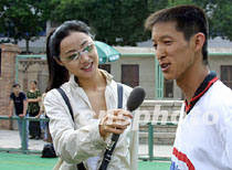 九日下午四時,“萬里行”鳳凰車隊隨行記者來到位于蘭州市區(qū)的甘肅體工隊訓(xùn)練基地,迎接我們的是一幅幅緊張訓(xùn)練的場景。在曲棍球場,全國冠軍甘肅曲棍球男隊隊員正在進行射門訓(xùn)練。下午三點半剛剛從北京飛來加入我們車隊的影視明星劉蓓小姐客串主持。她大步跨進球場,手提話筒,對二名球員作了現(xiàn)場采訪。“能簡單介紹一下曲棍球的比賽規(guī)則嗎?”、“曲棍球是奧運會項目,你們對北京申奧有什么感想?”面對劉蓓的“窮追猛打”,甘肅漢子鎮(zhèn)定自如。他們不僅一一作答,還招來隊員,與劉蓓一起,為北京申奧吶喊:“北京好運”。