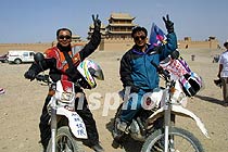 中新網嘉峪關6月11日消息:(記者呂振亞)一路西行,穿過戈壁沙灘,今天下午四時許,“申奧萬里行”鳳凰車隊抵達“天下第一雄關”嘉峪關。 二位英雄早早等候在關外,與車隊一起為北京申奧助威。他們是剛剛從珠穆朗瑪峰挑戰極限載譽歸來的楊華和張長順。五月二十六日,楊張二人駕駛國產摩托車從嘉峪關出發,六月一日攀登珠峰至大本營,創造了駕車登山五千八百米的吉尼斯世界紀錄。恰逢申奧車隊抵達這里,當地政府特意在關外舉行盛大歡迎儀式,既為二位英雄慶功,又為北京申奧助威。 儀式過后,由楊張二位車手引領的摩托車隊帶領申奧車隊入關,直奔長城第一墩。一條長龍橫穿古老長城,一架裝有攝像機的小型飛機飛躍上空,壯觀的申奧車隊盡收其中。 按計劃,車隊明天將出關,前往敦煌。(完) |