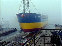 大連中國船舶重工集團公司為中國海洋石油總公司生產的中國最大、最先進的南海奮進號“15萬噸浮式生產儲油船”十八日順利下水。此船兼有生產和儲油的作用,將在中國南海油田工作十年以上。在船舶制造總量上,中國已連續六年居世界第三,僅次于日本、韓國。