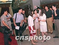 圖:中外媒體記者在北京采訪中日貿(mào)易磋商 2001年07月03日 19:17 ![]() 在北京的中外媒體記者三日下午在中國外經(jīng)貿(mào)部談判大樓采訪“中日貿(mào)易磨擦問題正式磋商”。中新社記者 鄒憲 攝