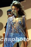 香港10日舉辦「香港時裝節春夏系列2002」時裝表演,模特展示設計師最新服飾,盡顯美態。中新社圖 洪少葵 攝