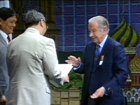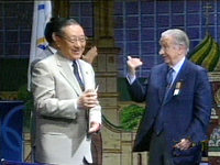 八位委員十一個問題 北京陳述人氣最旺(附圖) 2001年07月13日 20:25 ![]() ![]() ![]() 薩馬蘭奇主席代表國際奧委會向中國國務院副總理李嵐清頒發了特別證書。