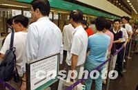 ![]() 七月十四日香港市民爭相購買為慶祝北京申辦2008年奧運會成功,香港郵政、中國郵政及澳門郵政七月十四日聯合發行的紀念套摺等郵品。中新社傳真 任海霞 攝