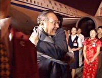 ![]() 北京奧運(yùn)會(huì)申辦代表團(tuán)七月十四日晚載譽(yù)從莫斯科回到北京。 ![]() 中國(guó)國(guó)務(wù)院副總理李嵐清十四日晚率領(lǐng)北京奧運(yùn)會(huì)申辦代表從莫斯科載譽(yù)回到北京。圖為,李嵐清在機(jī)場(chǎng)與前來(lái)迎接的國(guó)家副主席胡錦濤熱烈擁抱。