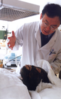 醫務人員在檢查自焚參與者陳果的病情