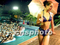 隨著悠揚的音樂,一群身穿泳裝的靚女模特出場,向舞臺下泳池里同樣穿著泳裝的觀眾,展示近百款色彩斑斕的新潮泳裝……自上月底開始,黃金海岸水上樂園泳裝模特隊,每天晚上八點至九點,在水上演舞臺隆重推出“水上泳裝秀”,觀眾如潮水般涌至“黃金海岸”,一個挨一個地坐在泳圈里泡在碧波里大飽眼福。據悉,該樂園的“水上泳裝秀”將表演至本月底結束。