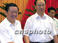 圖文:白克明任海南省委書記 杜青林另有任用 2001年08月16日 17:32 ![]() 白克明 ![]() 杜青林(資料圖片,中新社記者 張煒 攝) ![]() 八月十五日上午,中共海南省委召開干部大會。中共中央組織部副部長黃晴宜宣布:杜青林不再擔(dān)任海南省委書記職務(wù),另有任用;任命白克明接任中共海南省委書記職務(wù)。中新社記者 關(guān)向東 攝 ![]() 八月十五日上午,中共海南省委召開干部大會。中共中央組織部副部長黃晴宜宣布:杜青林不再擔(dān)任海南省委書記職務(wù),另有任用;任命白克明接任中共海南省委書記職務(wù)。在海南工作了九年多的杜青林與剛剛履新的白克明握手“交班”。中新社記者 關(guān)向東 攝