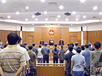 圖文:“法輪功”天安門自焚事件制造者被審判 2001年08月17日 11:00 ![]() 北京市第一中級人民法院十七日對今年一月二十三日制造天安門廣場自焚事件的五名“法輪功”涉案人進行了一審公開宣判。 ![]() 十七日上午,北京市第一中級人民法院對五名制造天安門廣場自焚事件的“法輪功”癡迷者進行一審判決,以故意殺人罪判處劉云芳無期徒刑、剝奪政治權利終身。